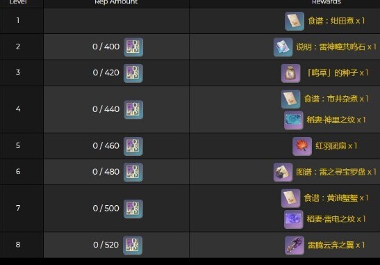1、三個稻妻特有的食譜,食物的加成如下圖。