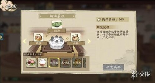 2、進(jìn)入店鋪,點(diǎn)擊糕點(diǎn)選項(xiàng)可研發(fā)全新美食,但需先解鎖對(duì)應(yīng)材料。