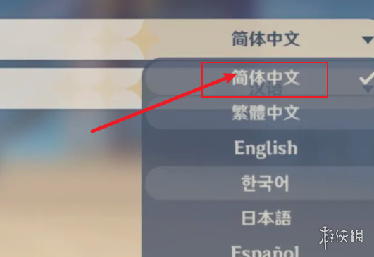 4、找到語言(language)按鈕,點擊打開,在右側(cè)可以調(diào)整游戲語言,選擇簡體中文(Chinese)即可。