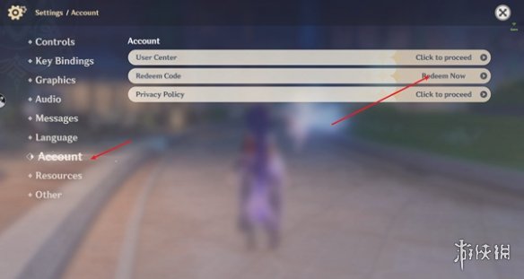4、然后找到Account按鍵并點擊,再點擊Redeem Code選項。